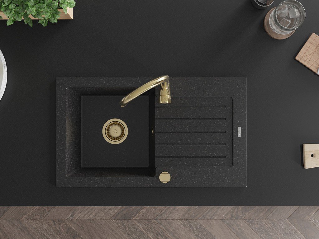 MEXEN/S - Andres granitový dřez s odkapávačem včetně baterie Flora, černá 6515-77-670401-57-B