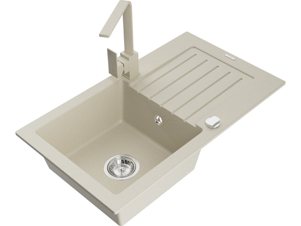 MEXEN/S - Pablo granitový dřez 1-miska s odkapávačem včetně baterie Rita, béžový 6510-69-670300-69
