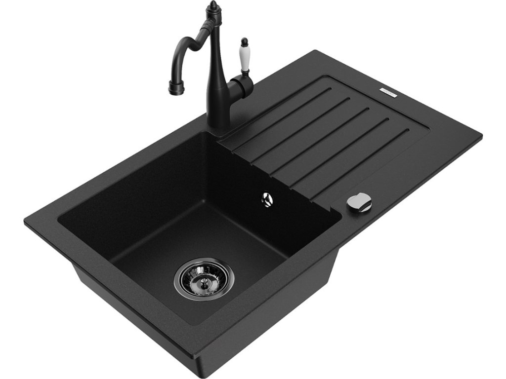 MEXEN/S - Pablo granitový dřez 1-miska včetně baterie Carla, černá 6510-77-670700-70-B