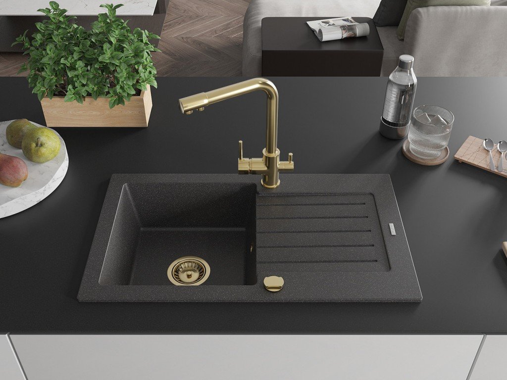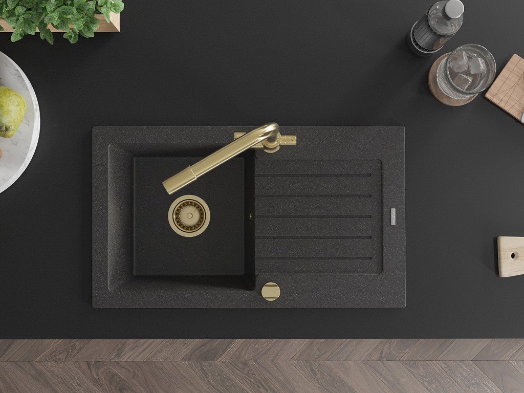 MEXEN/S - Pablo granitový dřez 1-miska včetně baterie Duero, černá kropenatá 6510-76-671600-50