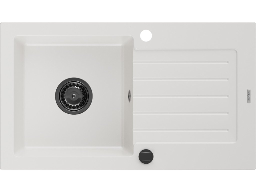 MEXEN/S - Pablo granitový dřez 1 s odkapávačem 752 x 436 mm, bílá, + sifon grafit 6510751010-20-B