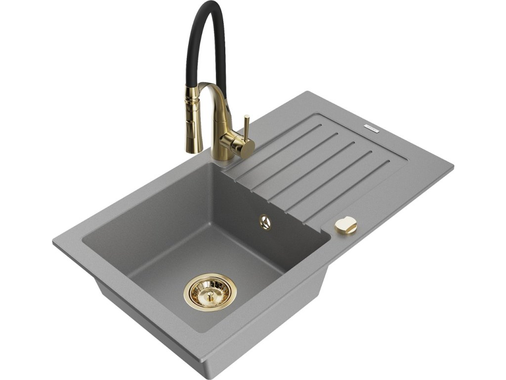 MEXEN/S - Pablo granitový dřez 1 s odkapávačem včetně baterie Aster, šedá 6510-71-73450-57-G