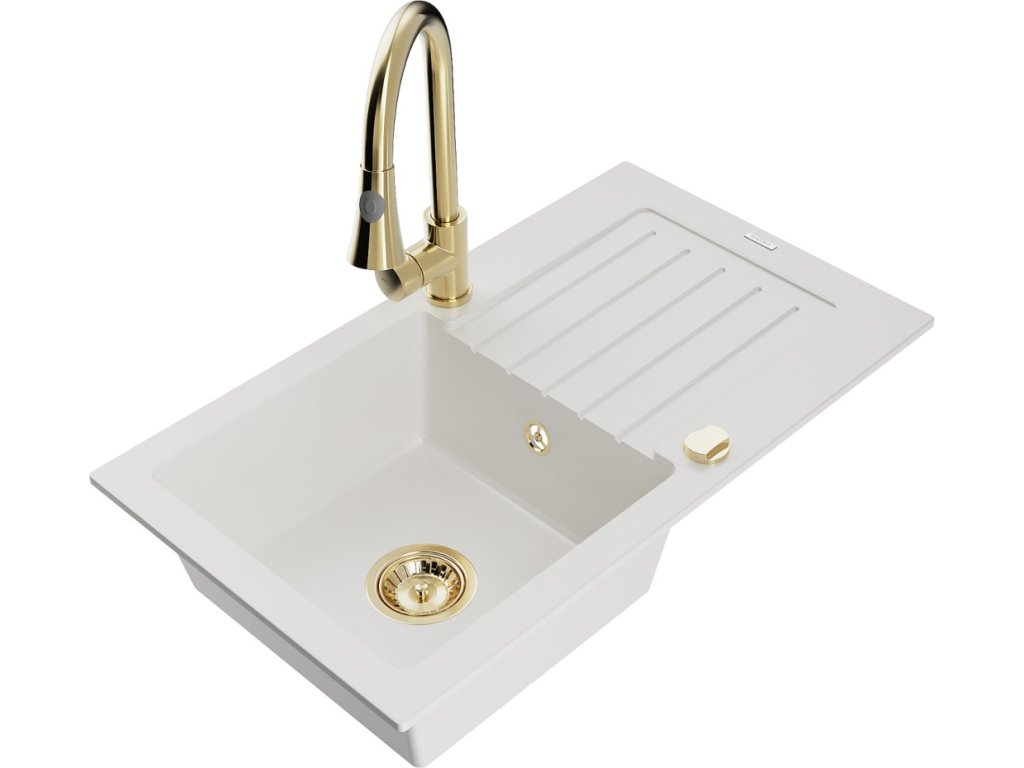 MEXEN/S - Pablo granitový dřez 1 s odkapávačem včetně baterie Elia, bílá 6510-20-670101-50