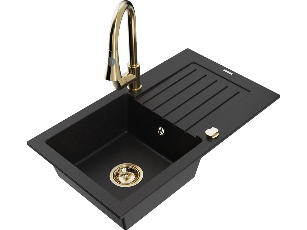 MEXEN/S - Pablo granitový dřez 1 s odkapávačem včetně baterie Elia, černá 6510-77-670101-50