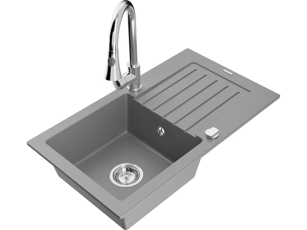 MEXEN/S - Pablo granitový dřez 1 s odkapávačem včetně baterie Elia, šedá 6510-71-670101-00