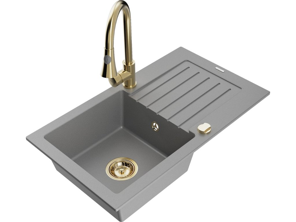 MEXEN/S - Pablo granitový dřez 1 s odkapávačem včetně baterie Elia, šedá 6510-71-670101-50