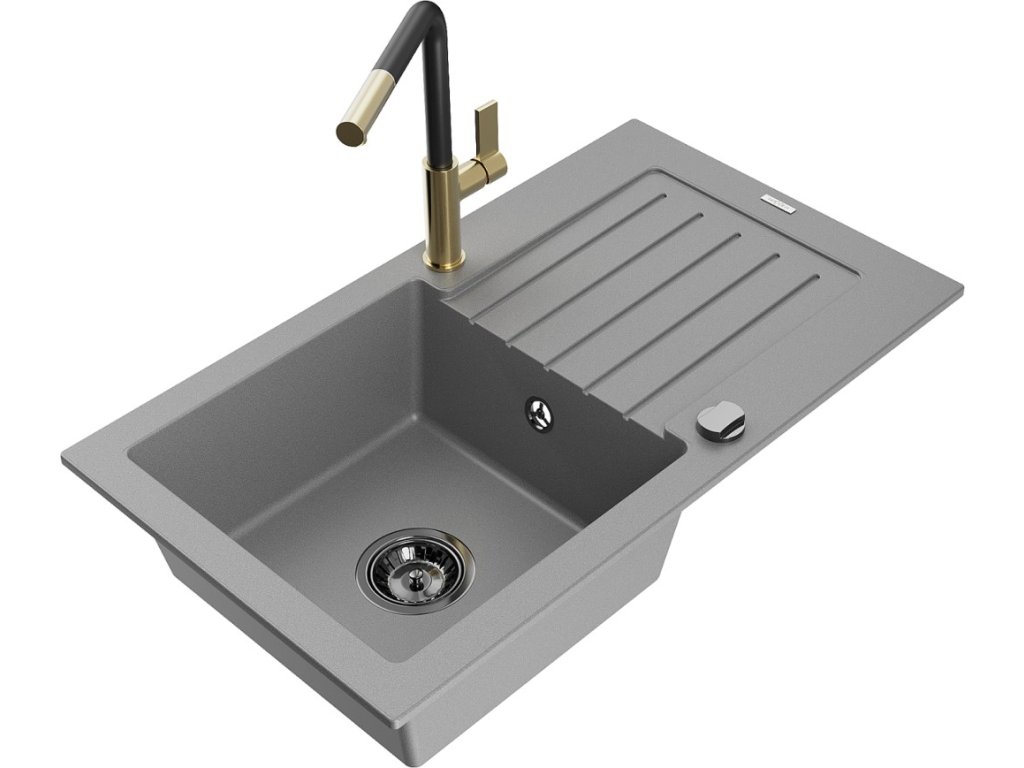 MEXEN/S - Pablo granitový dřez 1 s odkapávačem včetně baterie Flora, šedá 6510-71-670401-57-B