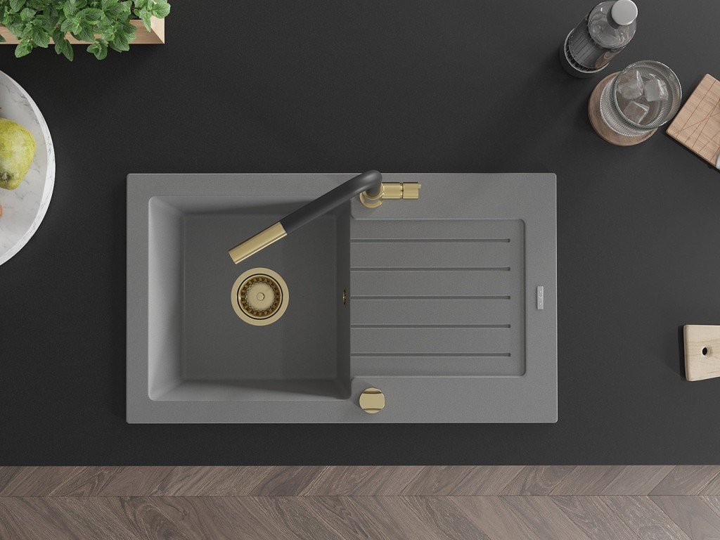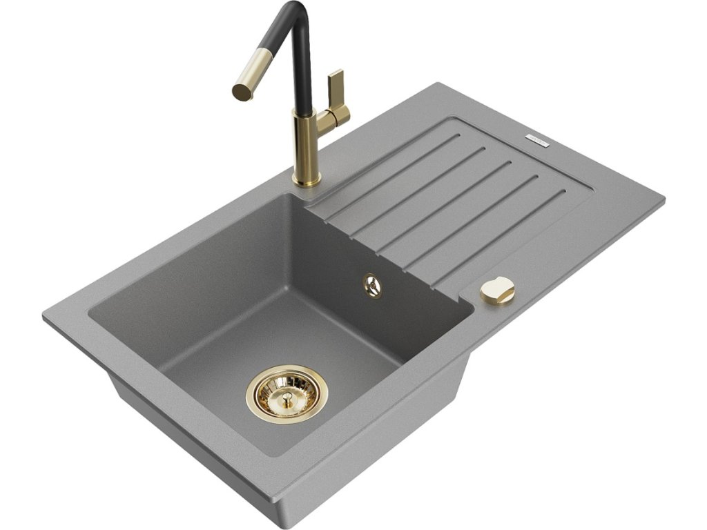 MEXEN/S - Pablo granitový dřez 1 s odkapávačem včetně baterie Flora, šedá 6510-71-670401-57-G