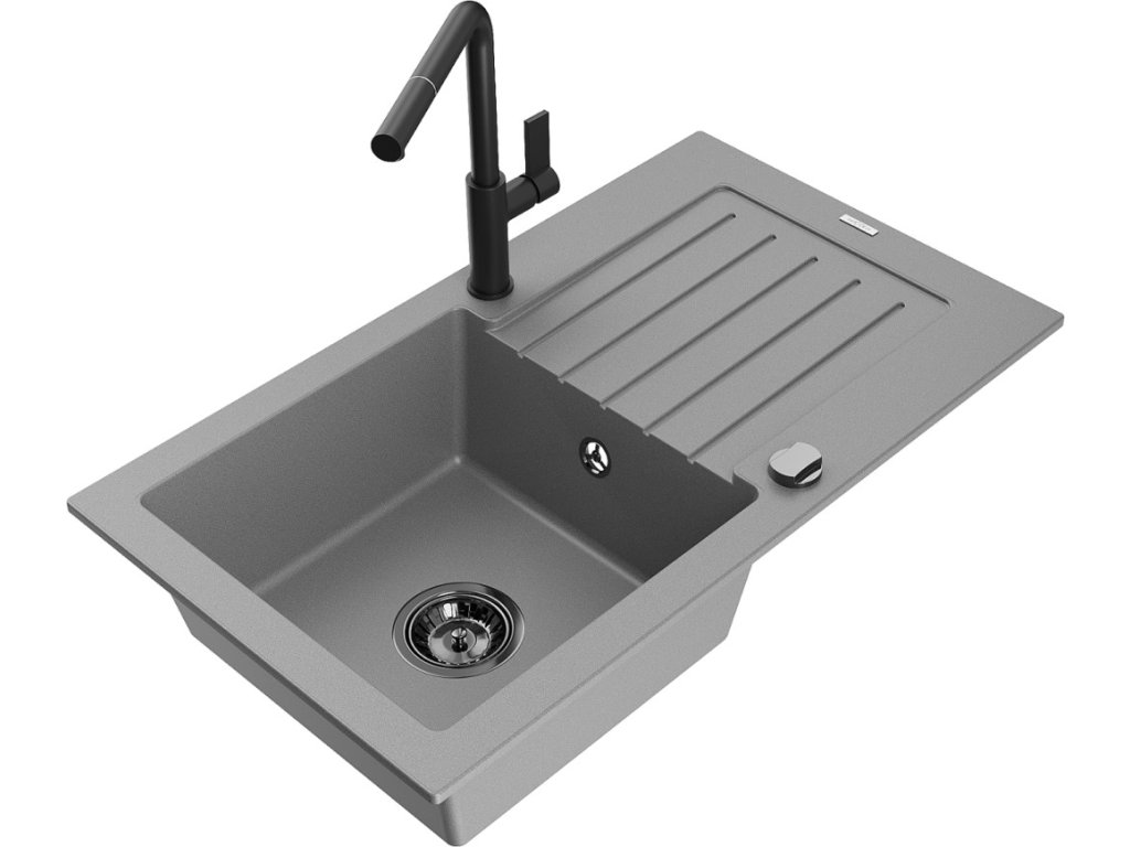 MEXEN/S - Pablo granitový dřez 1 s odkapávačem včetně baterie Flora, šedá 6510-71-670401-70-B