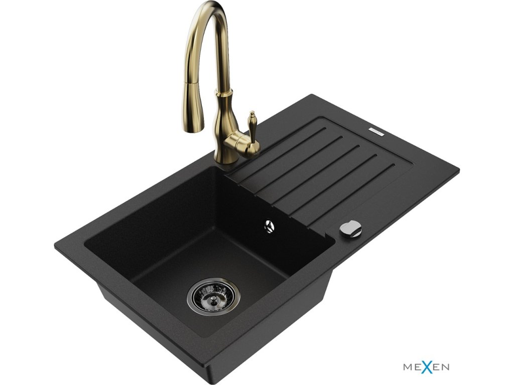 MEXEN/S - Pablo granitový dřez 1 s odkapávačem včetně baterie Savita, černá 6510-77-672601-50-B