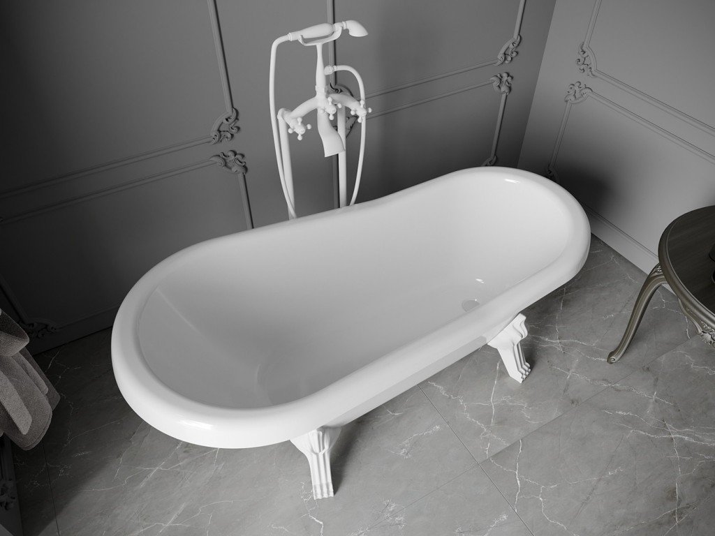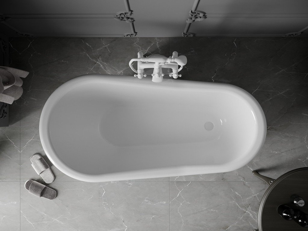 MEXEN/S - Retro volně stojící vana 150x73 cm bílá bílá nohy , sifon chrom 53251507300-20
