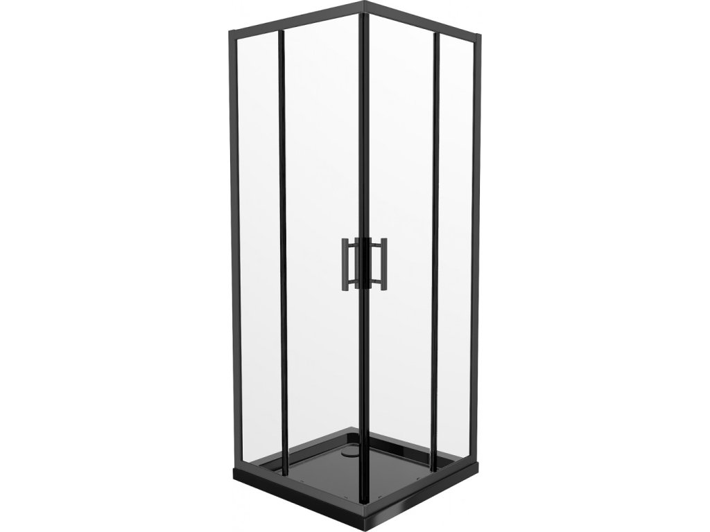 MEXEN/S - Rio čtvercový sprchový kout 90 x 90, transparent, černý + vanička se sifonem Flat, černý 860-090-090-70-00-4070B