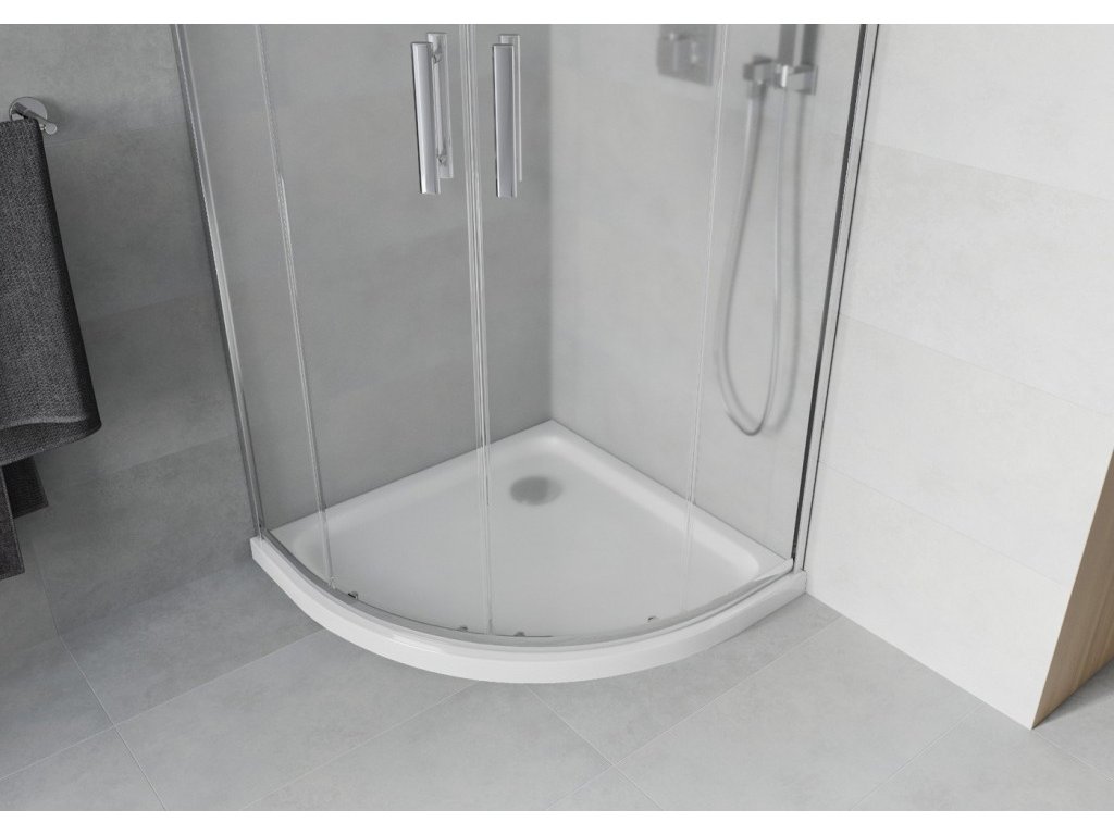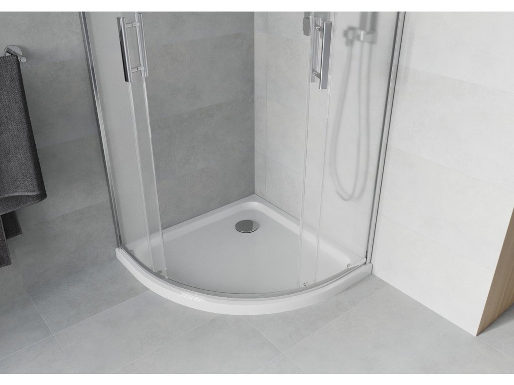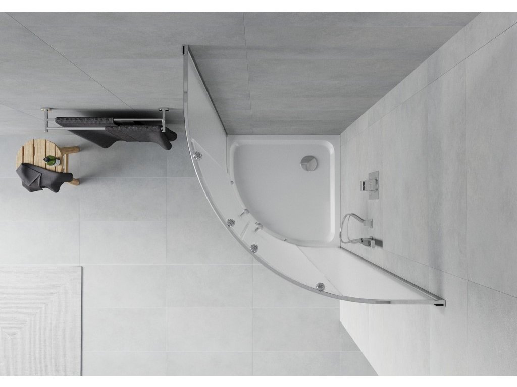 MEXEN/S - Rio čtvrtkruhový sprchový kout 90 x 90, mráz, chrom + vanička se sifonem Flat, bílá 863-090-090-01-30-4110