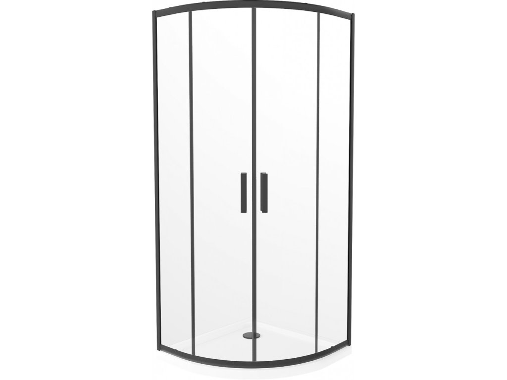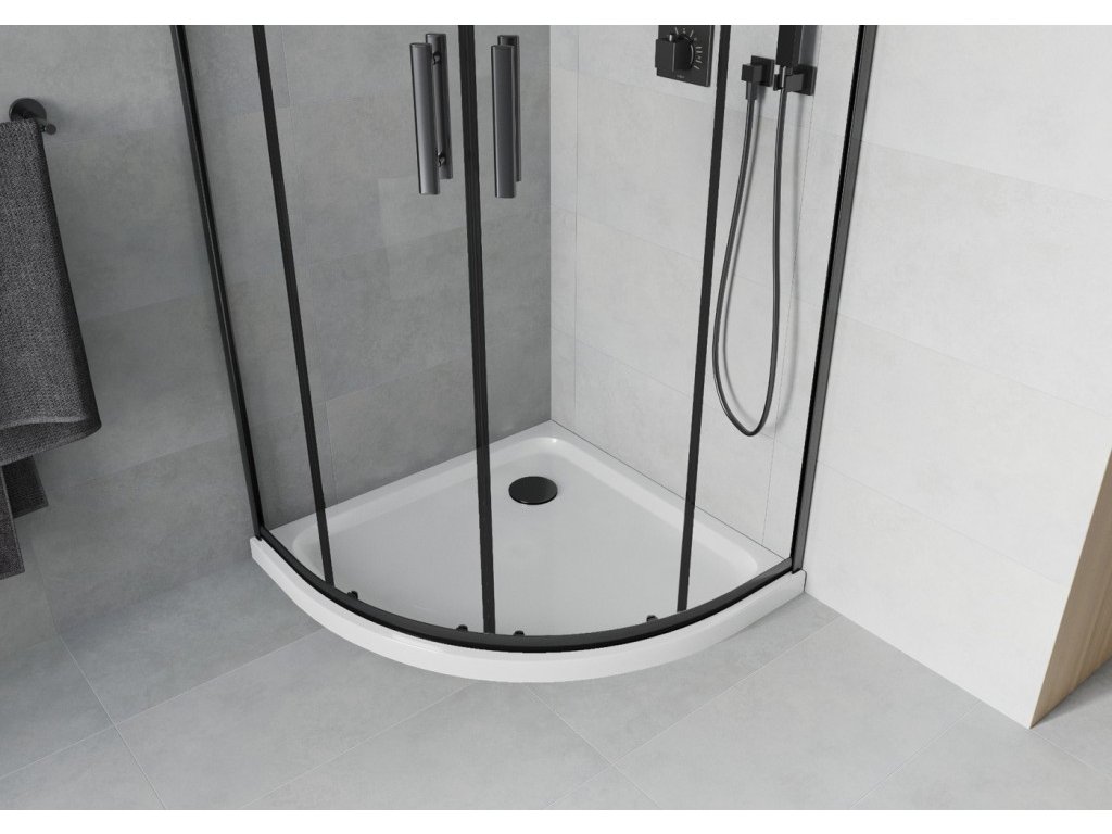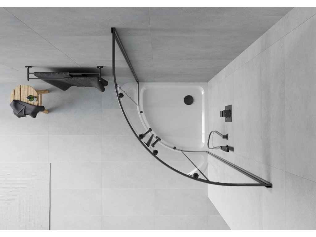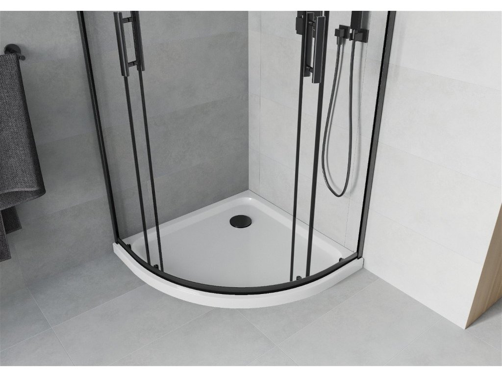 MEXEN/S - Rio čtvrtkruhový sprchový kout 90 x 90, transparent, černý + vanička se sifonem Flat, bílá 863-090-090-70-00-4110B