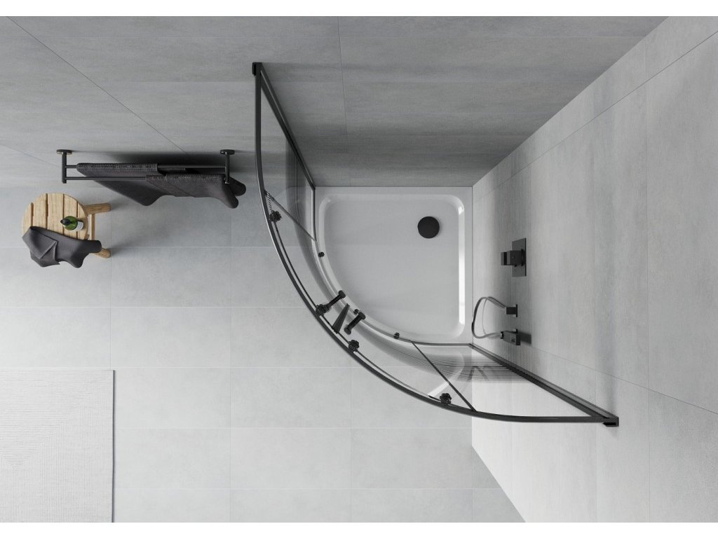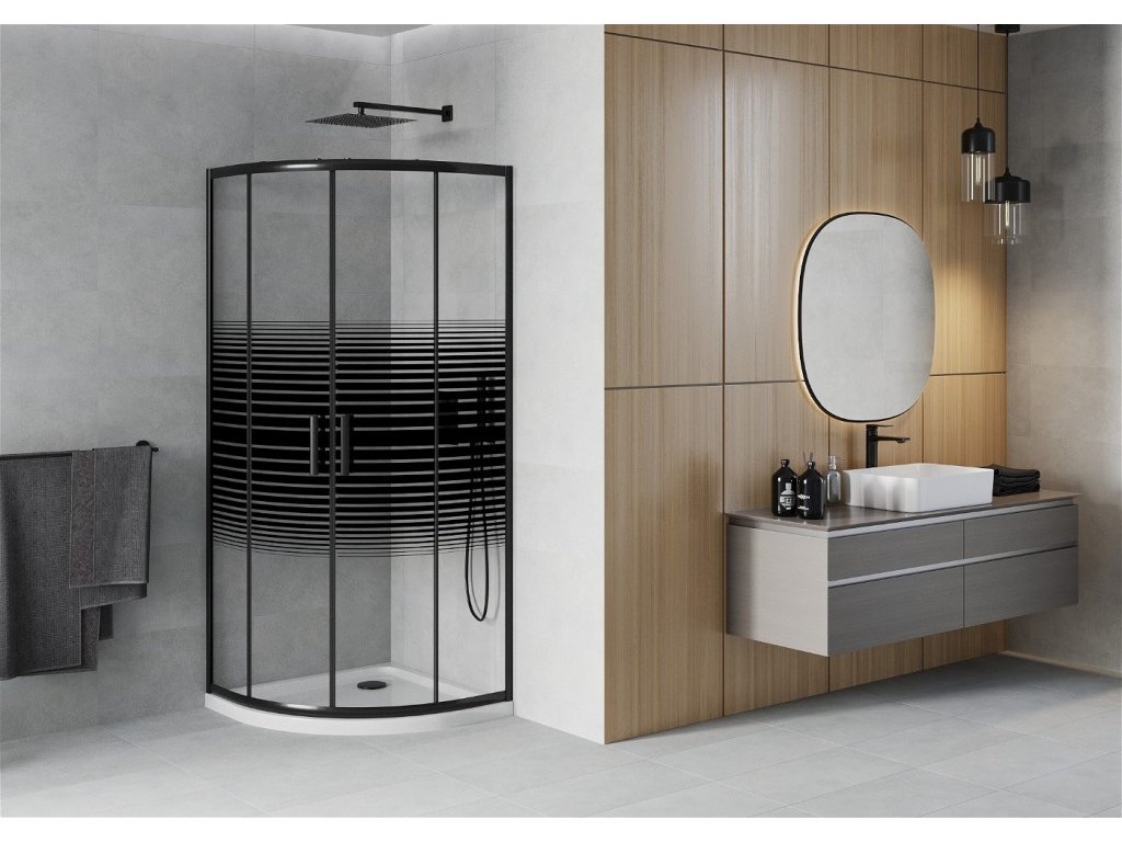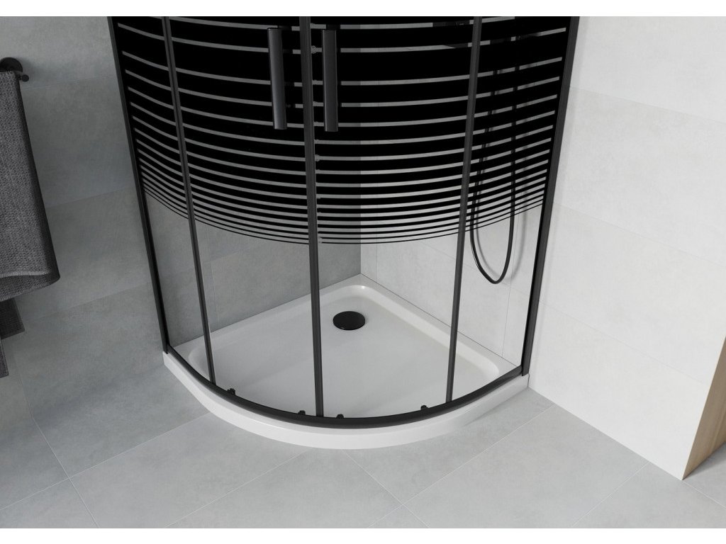 MEXEN/S - Rio sprchový kout čtvrtkruh 80x80, pruhy, černá + bílá vanička se sifonem 863-080-080-70-20-4110B