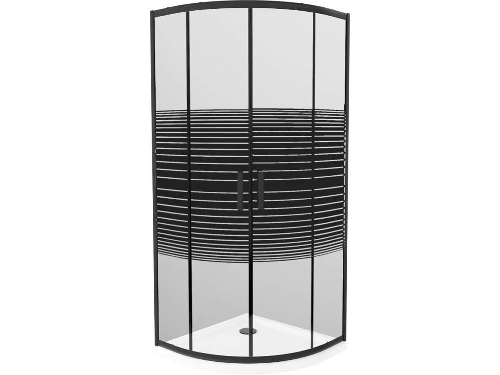 MEXEN/S - Rio sprchový kout čtvrtkruh 90x90, pruhy, černá + bílá vanička se sifonem 863-090-090-70-20-4110B