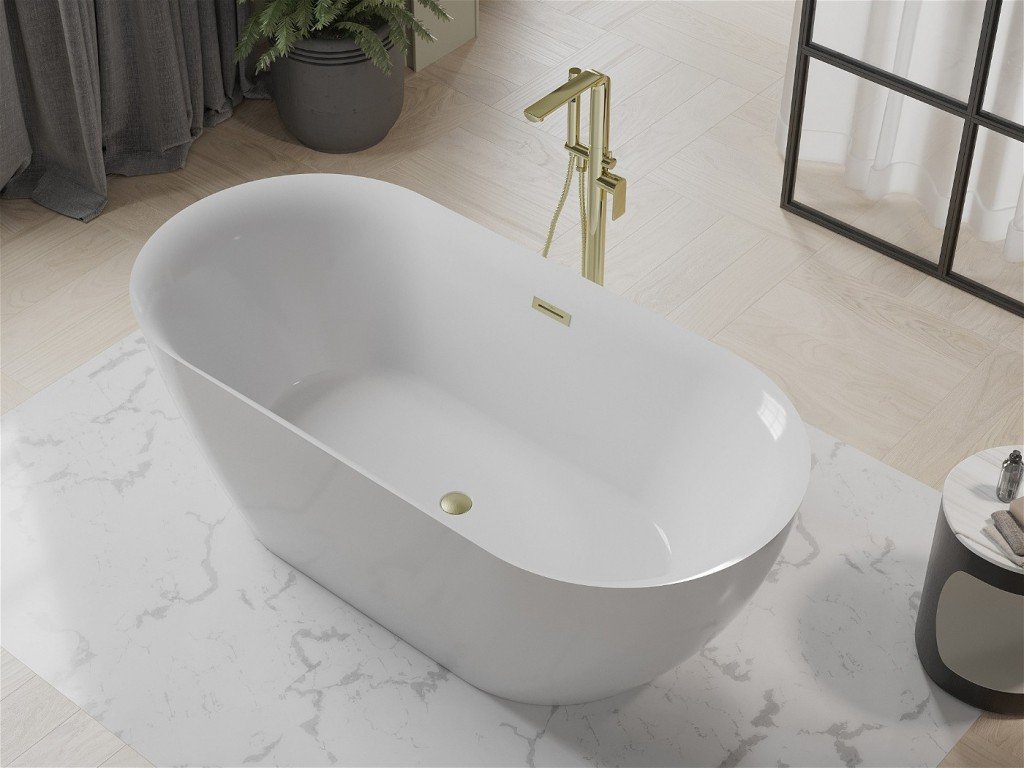 MEXEN/S - Roxy volně stojící vana 170 x 80, bílá, sifon a přepad zlatá kartáčovaná 51201708000-55
