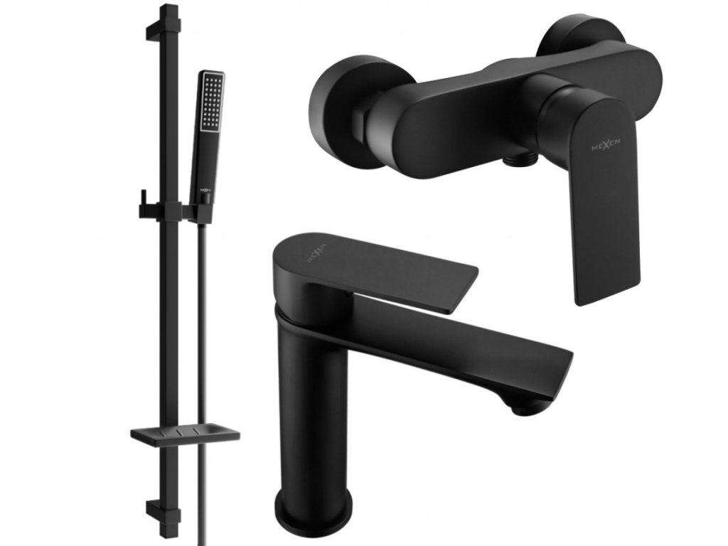 MEXEN/S - Royo SET umyvadlová + sprchová baterie s příslušenstvím DQ72, černá 72204DQ72-70