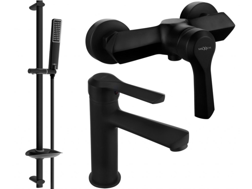 MEXEN/S - Saber DB72 Set umyvadlové a sprchové baterie s příslušenstvím, černá 72104DB72-70