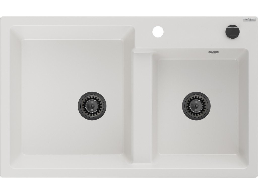 MEXEN/S - Tomas granitový dřez 2-bowl 800 x 500 mm, bílá, + černý sifon 6516802000-20-B