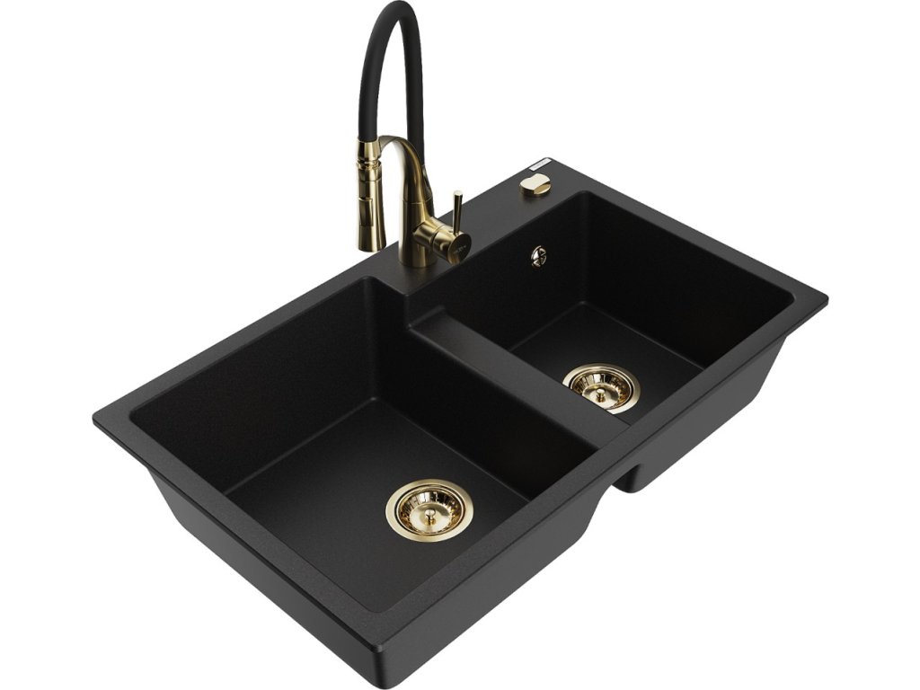 MEXEN/S - Tomas granitový dřez 2-bowl včetně baterie Aster, černá 6516-77-73450-57-G