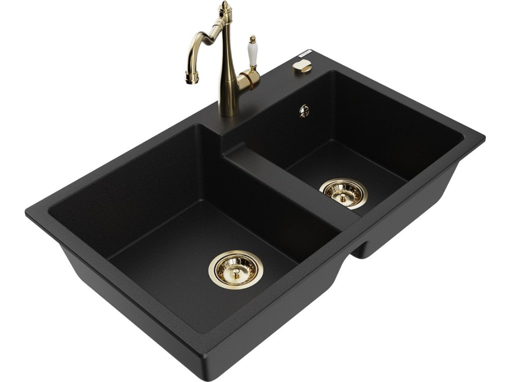 MEXEN/S - Tomas granitový dřez 2-bowl včetně baterie Carla, černá 6516-77-670700-50