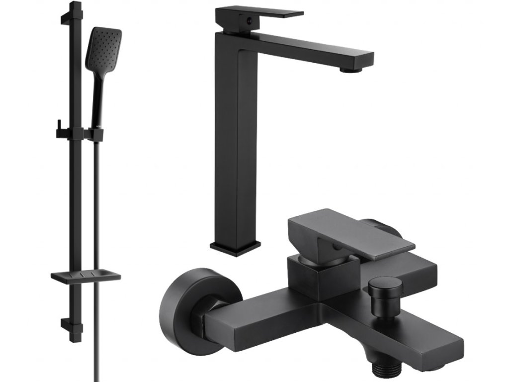 MEXEN/S - Uno DQ62 Set umyvadlové a vanové baterie s příslušenstvím, černá 71413DQ62-70