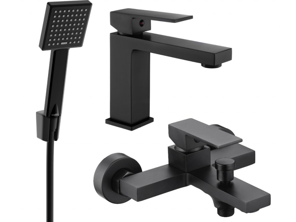 MEXEN/S - Uno R45 Set umyvadlové a vanové baterie s příslušenstvím, černá 71403R45-70