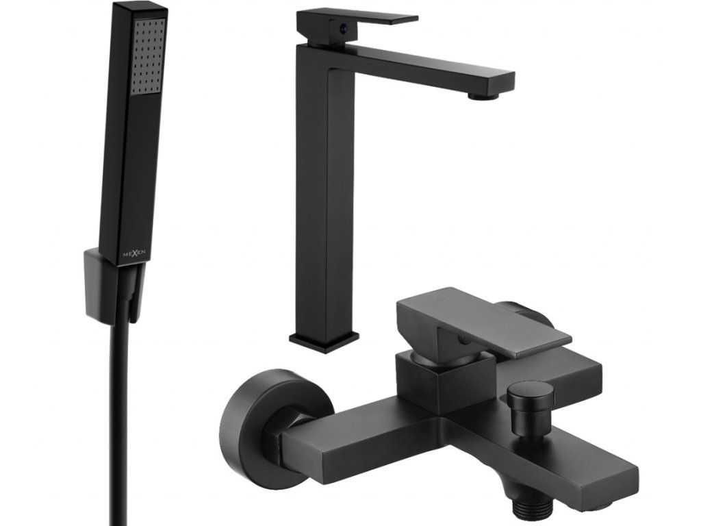 MEXEN/S - Uno R77 Set umyvadlové a vanové baterie s příslušenstvím, černá 71413R77-70