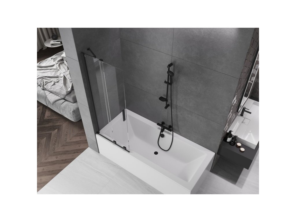 MEXEN/S - Velar Dvoukřídlá posuvná vanová zástěna 75 x 150, transparent, černá 896-075-000-01-70