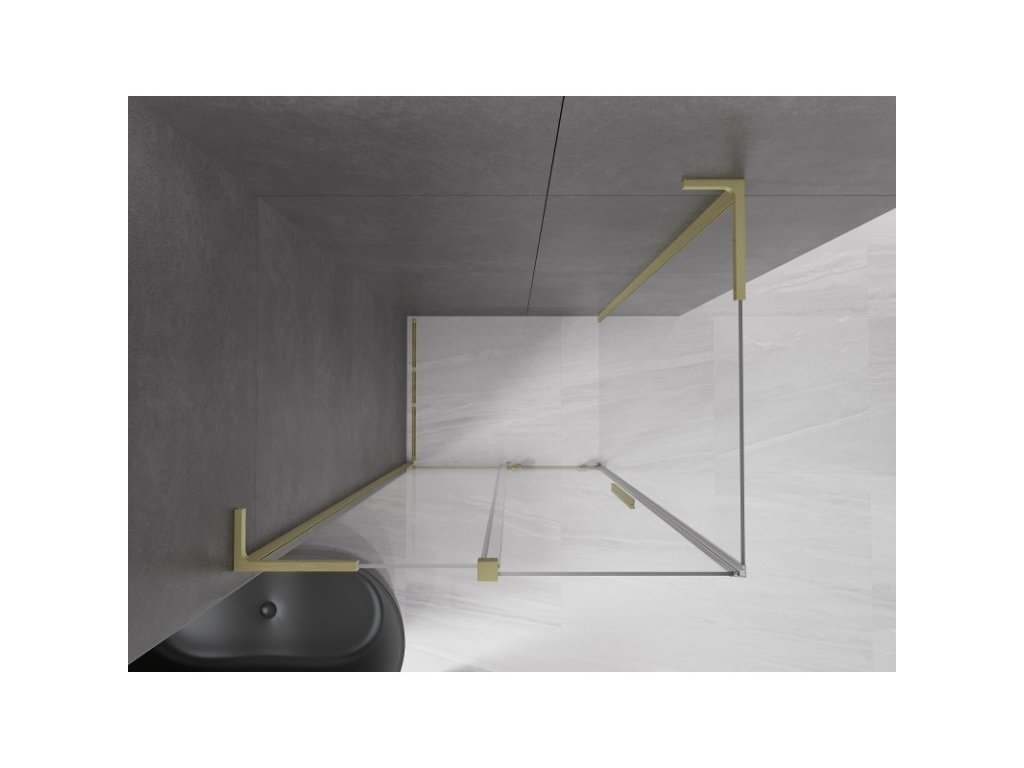 MEXEN/S - Velar L sprchový kout, posuvné dveře 100 x 75, transparent, zlato kartáčovaná 871-100-075-03-55
