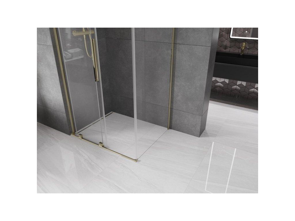 MEXEN/S - Velar L sprchový kout, posuvné dveře 110 x 85, transparent, zlato 871-110-085-03-50