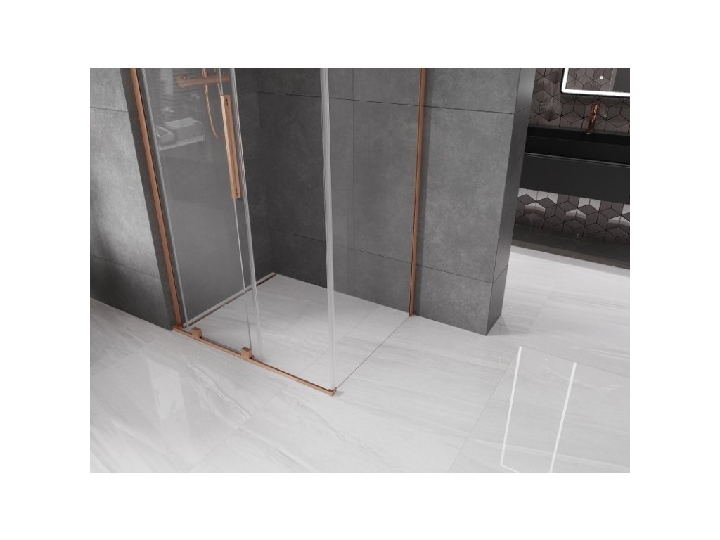 MEXEN/S - Velar L sprchový kout, posuvné dveře 120 x 100, transparent, měď kartáčovaná 871-120-100-03-65