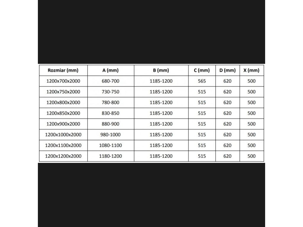 Specifikace produktu:Rozměr: 120x85 cm (dveře 120 cm, stěna 85 cm)