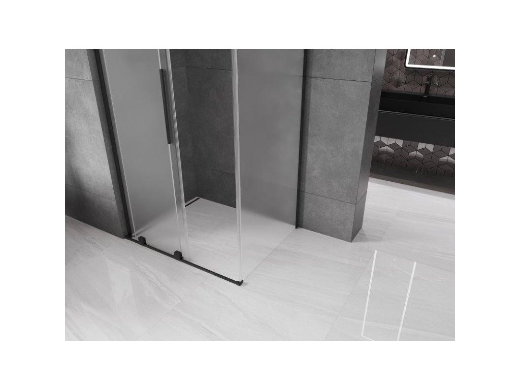 MEXEN/S - Velar L sprchový kout, posuvné dveře 90 x 75, dekor, černá 871-090-075-33-70