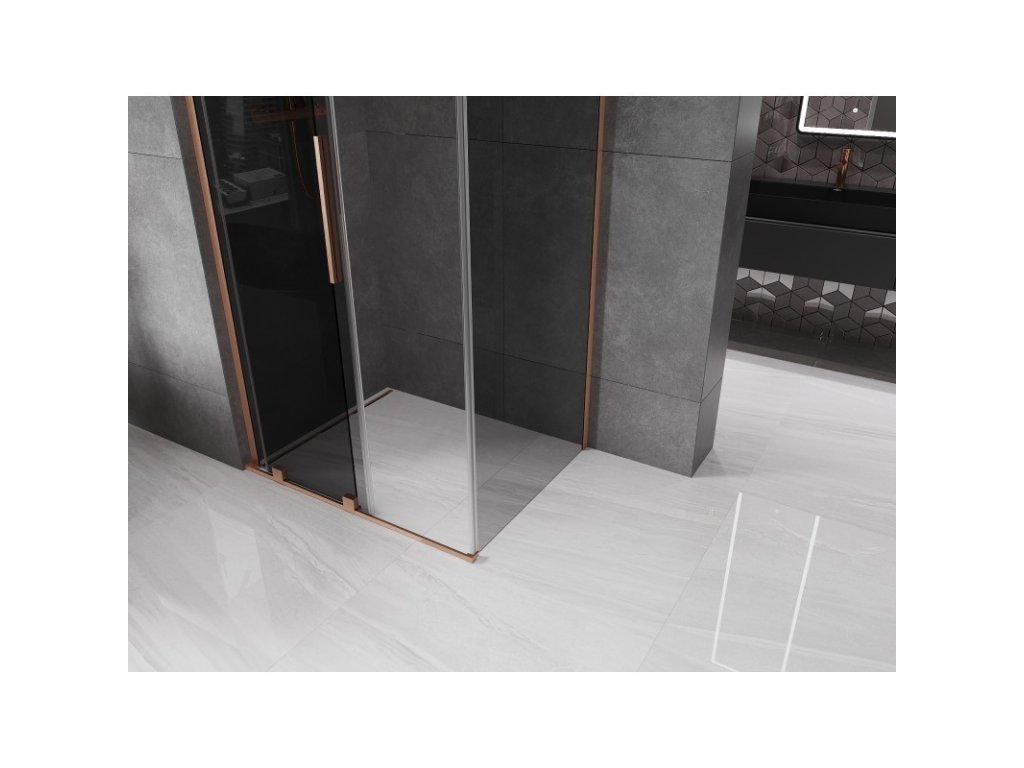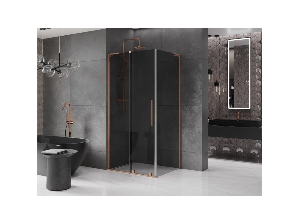 MEXEN/S - Velar L sprchový kout, posuvné dveře 90 x 85, grafit, měď kartáčovaná 871-090-085-43-65