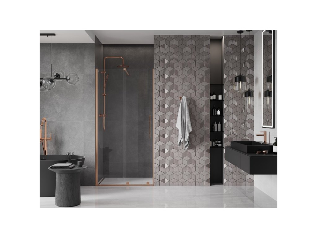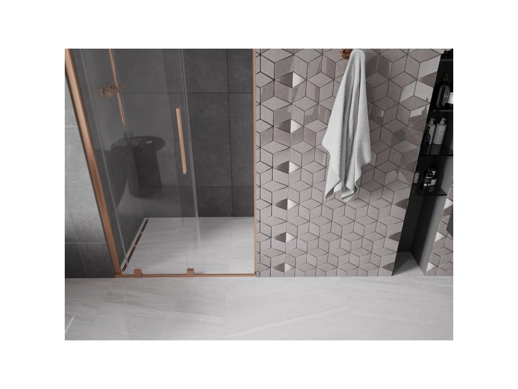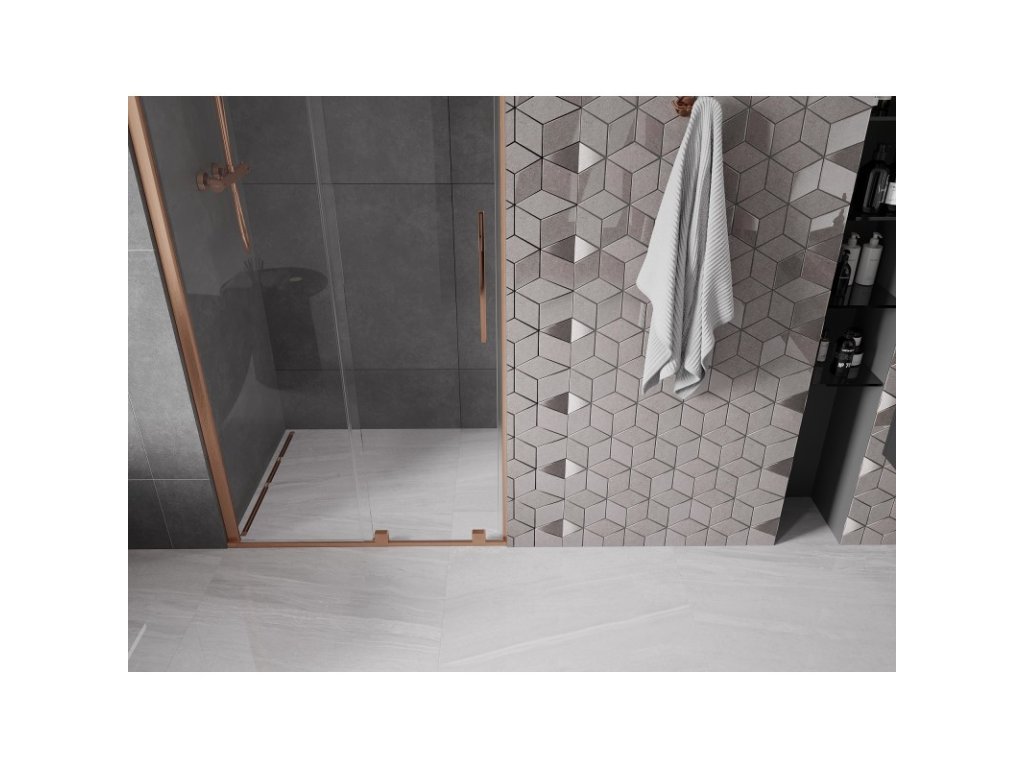 MEXEN/S - Velar posuvné sprchové dveře 90, transparent, kartáčovaná měď 871-090-000-01-65