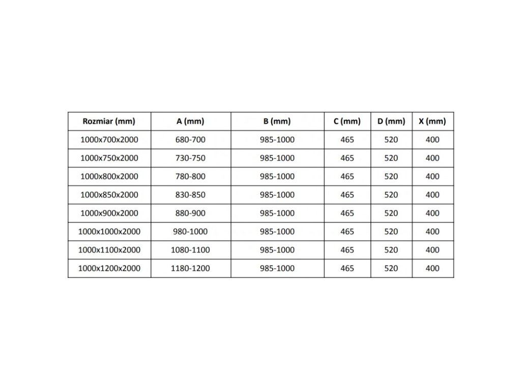 Specifikace produktu:Rozměr: 100x120 cm (dveře 100 cm, stěna 120 cm)