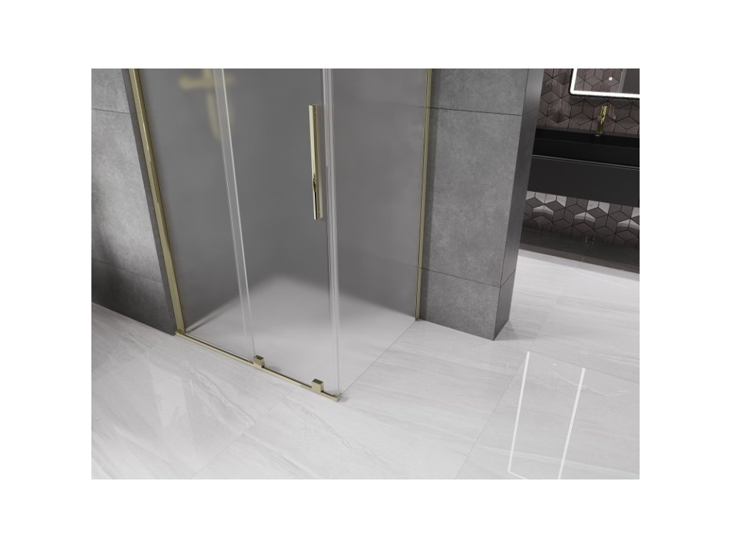 MEXEN/S - Velar sprchový kout, posuvné dveře 140 x 100, dekor, zlato 871-140-100-31-50