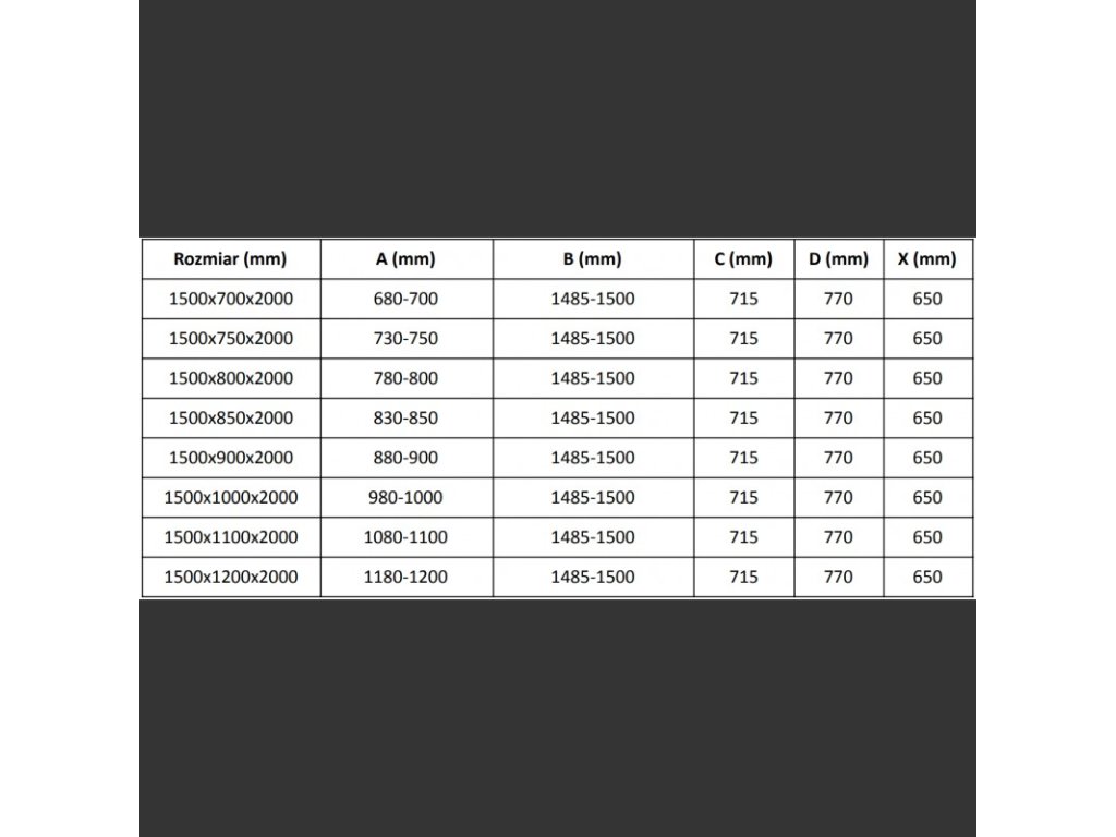 Specifikace produktu:Rozměr: 150x85 cm (dveře 150 cm, stěna 85 cm)