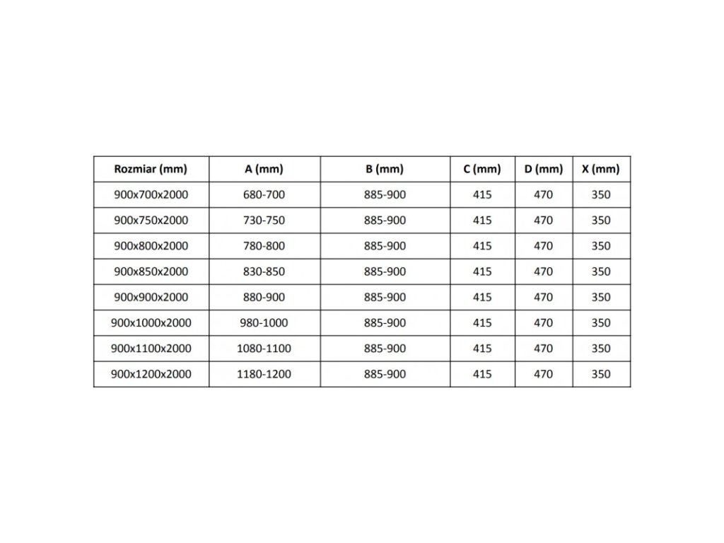 Specifikace produktu:Rozměr: 90x100 cm (dveře 90 cm, stěna 100 cm)