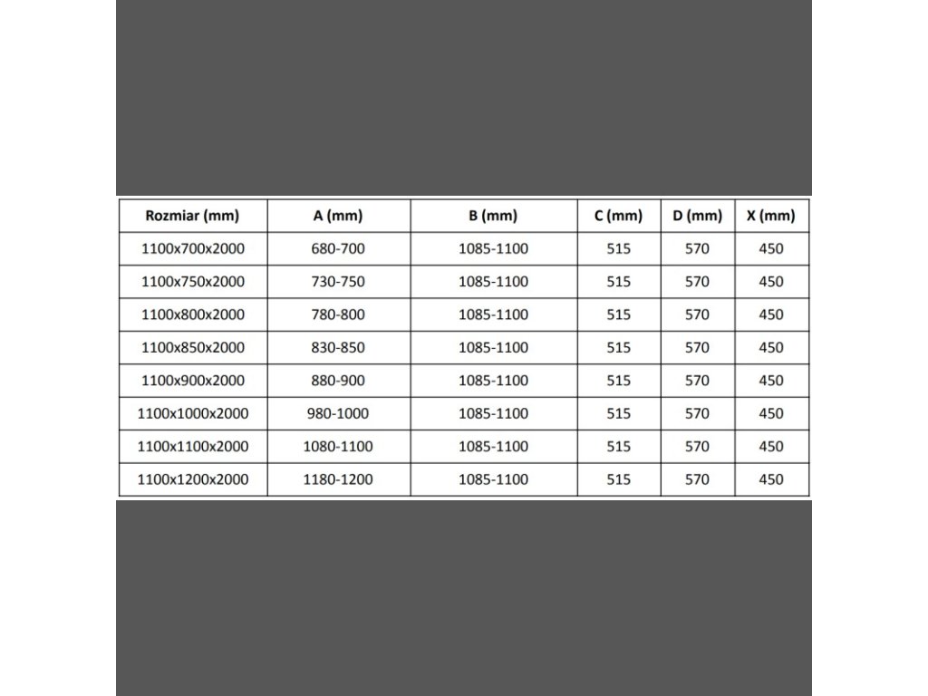 Specifikace produktu:Rozměr: 110x70 cm (dveře 110 cm, stěna 70 cm)