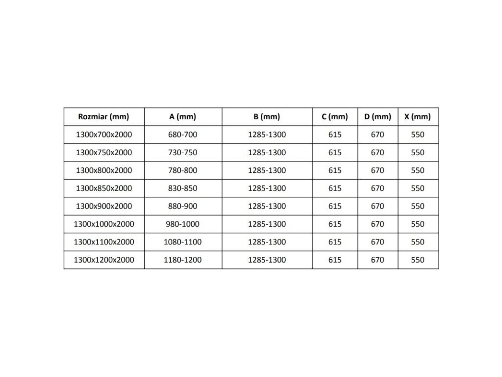 Specifikace produktu:Rozměr: 130x80 cm (dveře 130 cm, stěna 80 cm)