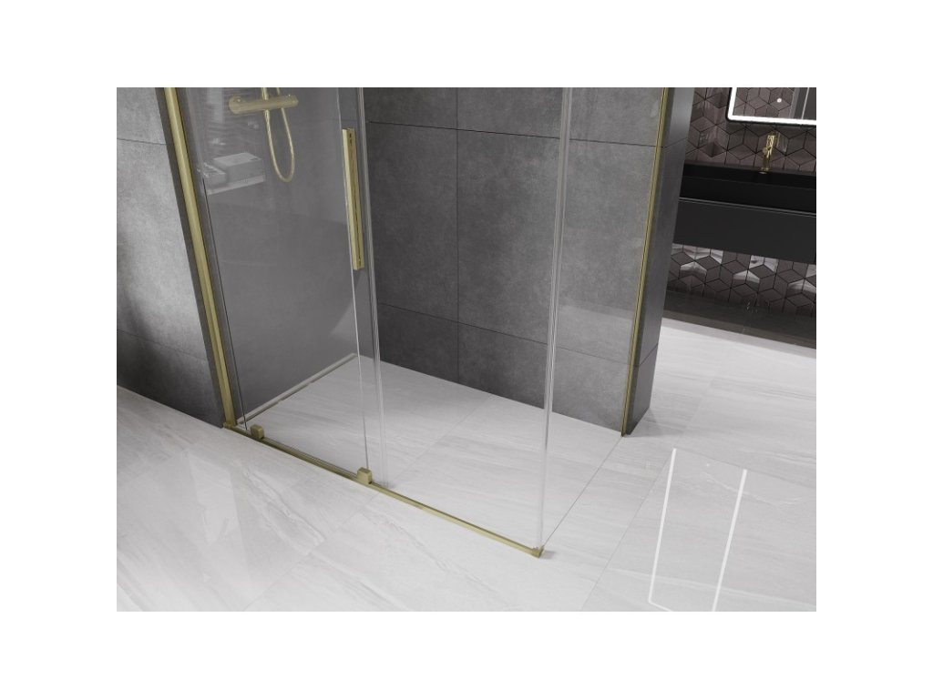 MEXEN/S - Velar sprchový kout 140 x 70, transparent, zlatá kartáčovaná 871-140-070-01-55