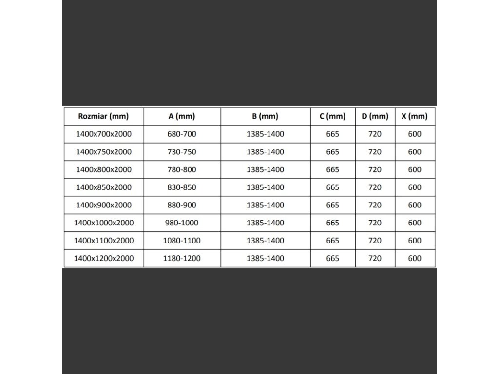 Specifikace produktu:Rozměr: 140x80 cm (dveře 140 cm, stěna 80 cm)