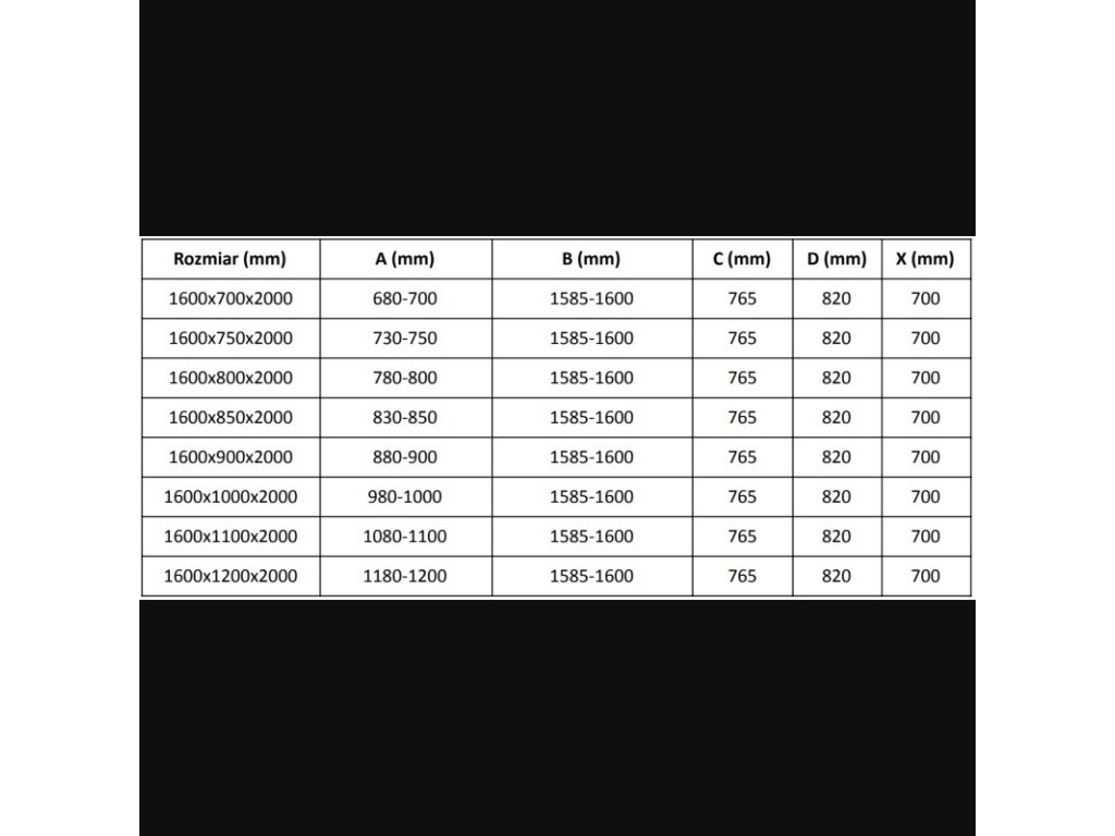 Specifikace produktu:Rozměr: 160x85 cm (dveře 160 cm, stěna 85 cm)