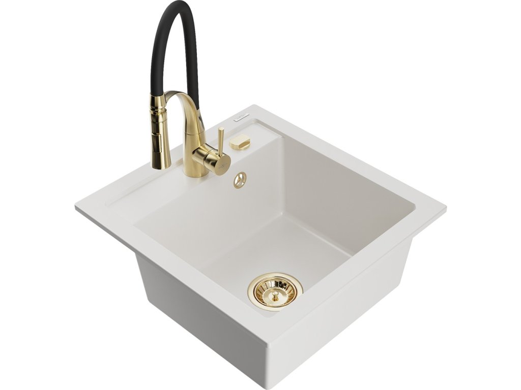 MEXEN/S - Vito granitový dřez 1-miska včetně baterie Aster, bílá 6503-20-73450-57-G