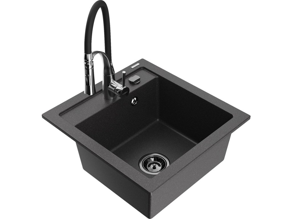 MEXEN/S - Vito granitový dřez 1-miska včetně baterie Aster, černá kropenatá 6503-76-73450-07-B