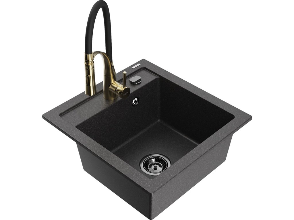 MEXEN/S - Vito granitový dřez 1-miska včetně baterie Aster, černá kropenatá 6503-76-73450-57-B
