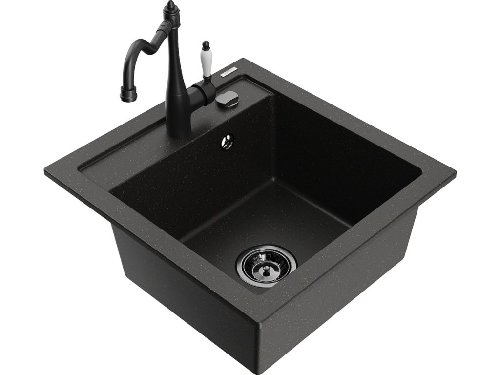 MEXEN/S - Vito granitový dřez 1-miska včetně baterie Carla, černá/zlatá metalik 6503-75-670700-70-B